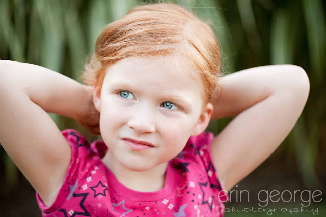 I got a new lens recently and the other night I dragged Teagan outside and bribed her with a popcorn snack to model for me so I could play. She wasn't too into it but I did get some shots. Attitude wise, age four is better than three, but four still has it's moments so I think these shots are pretty representative of Teagan some days. Overall though, I like them - kids aren't all smiles all the time, and it's nice to see something different. The third one, with her hands on her hips? Love it!